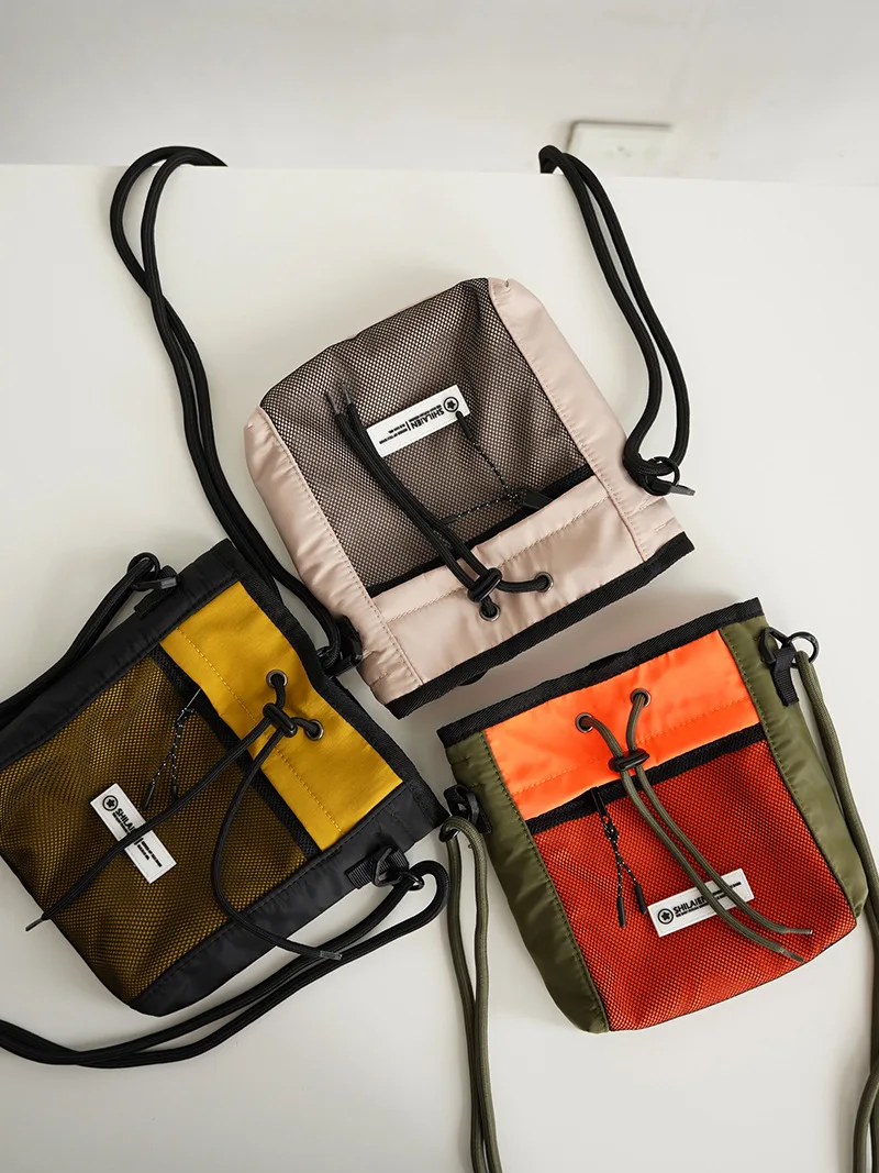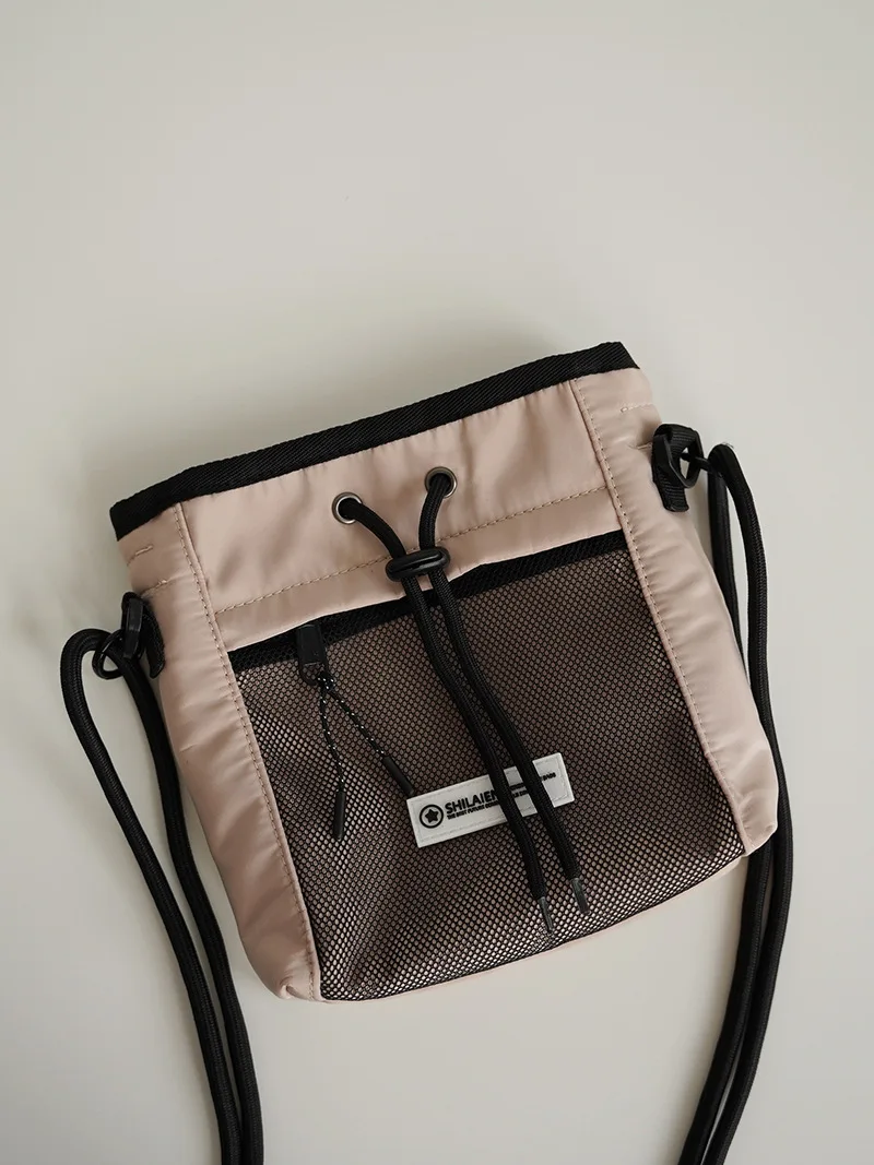 Hong Kong Style Neutral Collection Lady's New Fashionable Drawstring Shoulder Crossbody Bag Large Capacity Messenger Bag