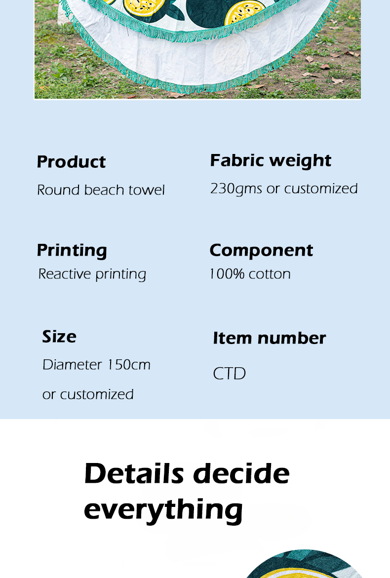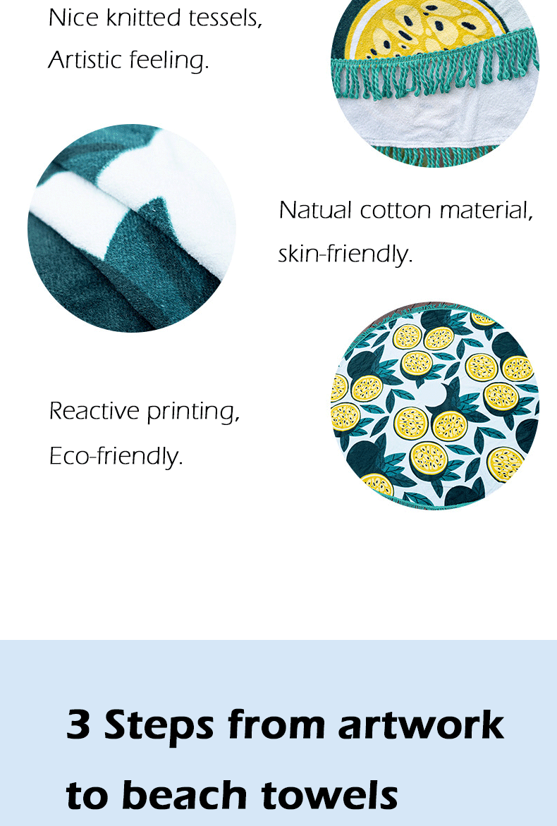 Cotton round beach towels with tessels