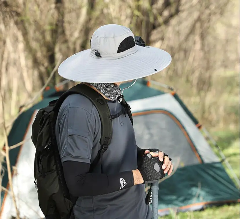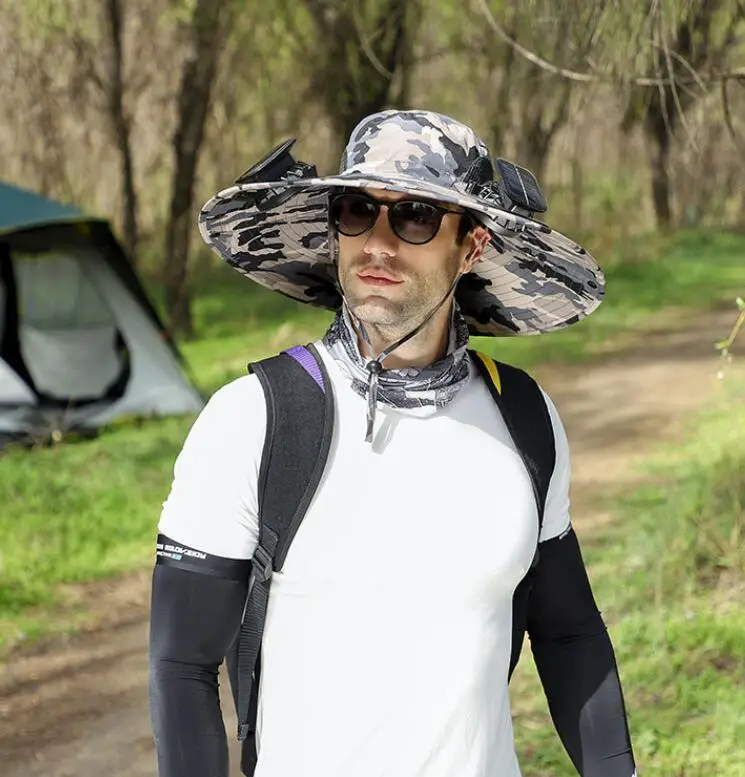 • High Quality Outdoor Fishing Hiking Travel Summer Upf50+ Wide Brim Sunscreen Sun Hat With Dual Solar Charging Fan