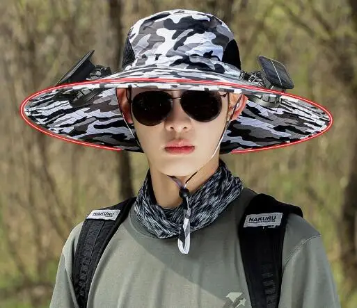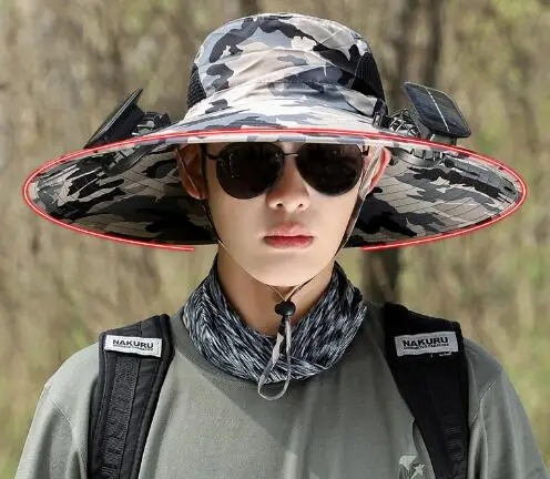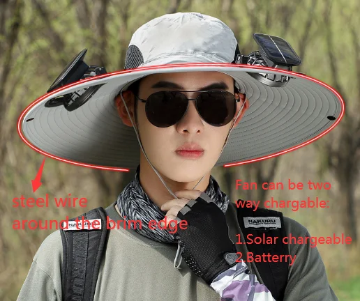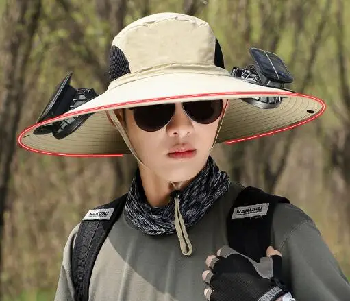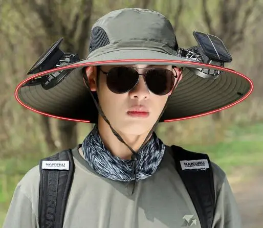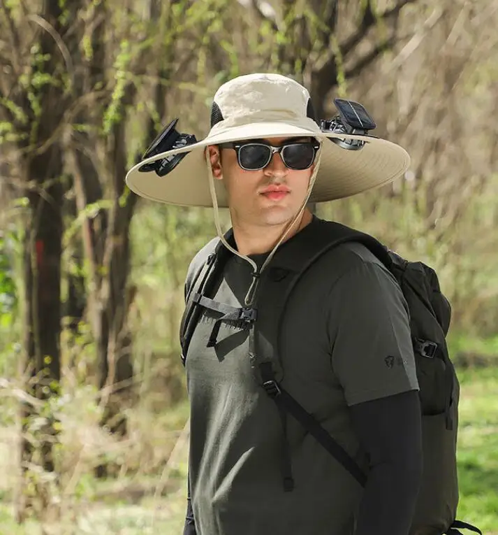Solar powered fan hat, air intake from both sides, doubling the heat dissipation capacity. The wide brim solar fan outdoor fishing hat 19"/48cm wide brim creates a large sunshade area, effectively covering the face and neck from direct sunlight, feel cool even outside.
