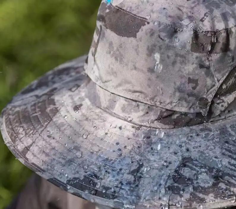【Breathable Fabric + Waterproof Coating】Hat with fan adopting lotus leaf-like splash-proof fabric, instantly drying with a shake. wide-brim solar fan hat can handle the unpredictable summer weather.