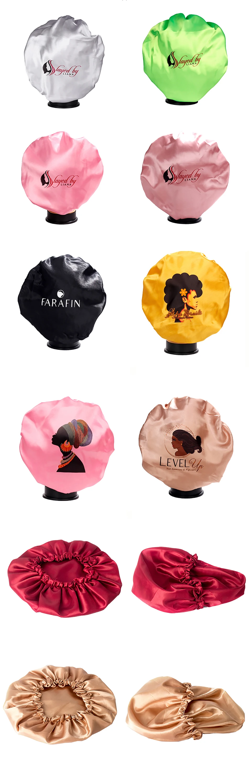 Custom Bonnets With Logo Women's Satin Double Layer Hat Sleep Hair Care Soft Bling Bonnets