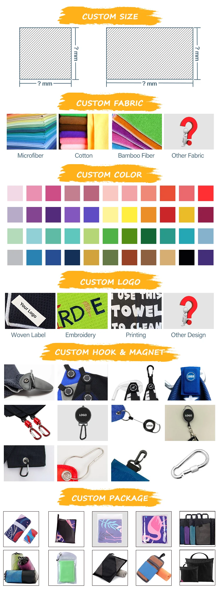 • Hot Selling Colorful Premium Magnetic Customized Waffle Sublimation Golf Towel With Hook
