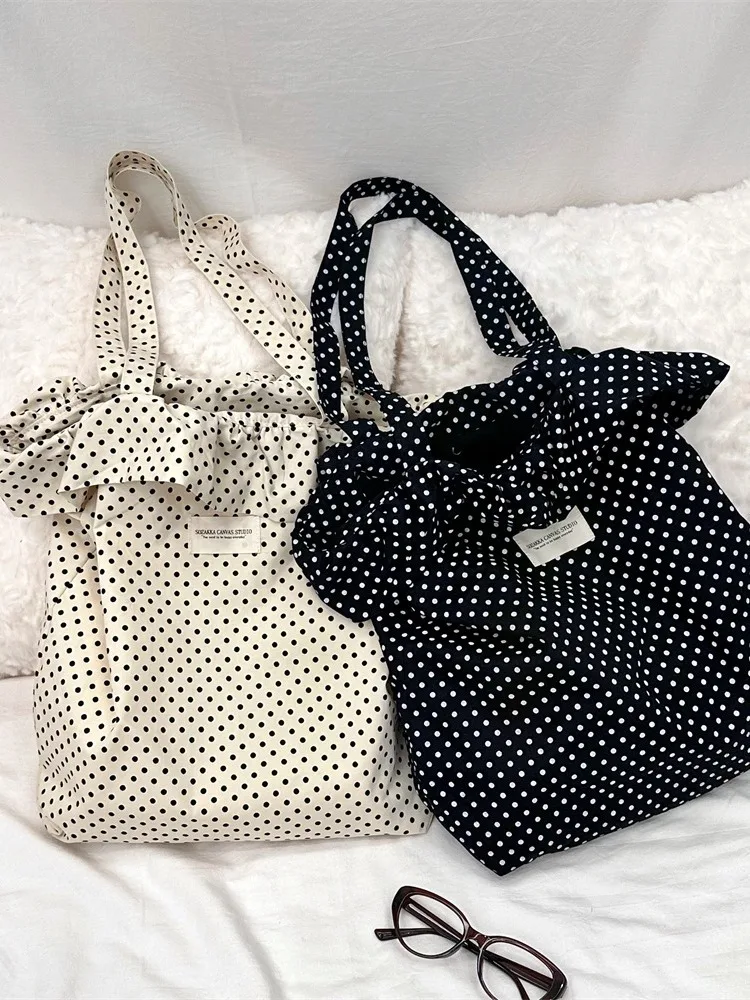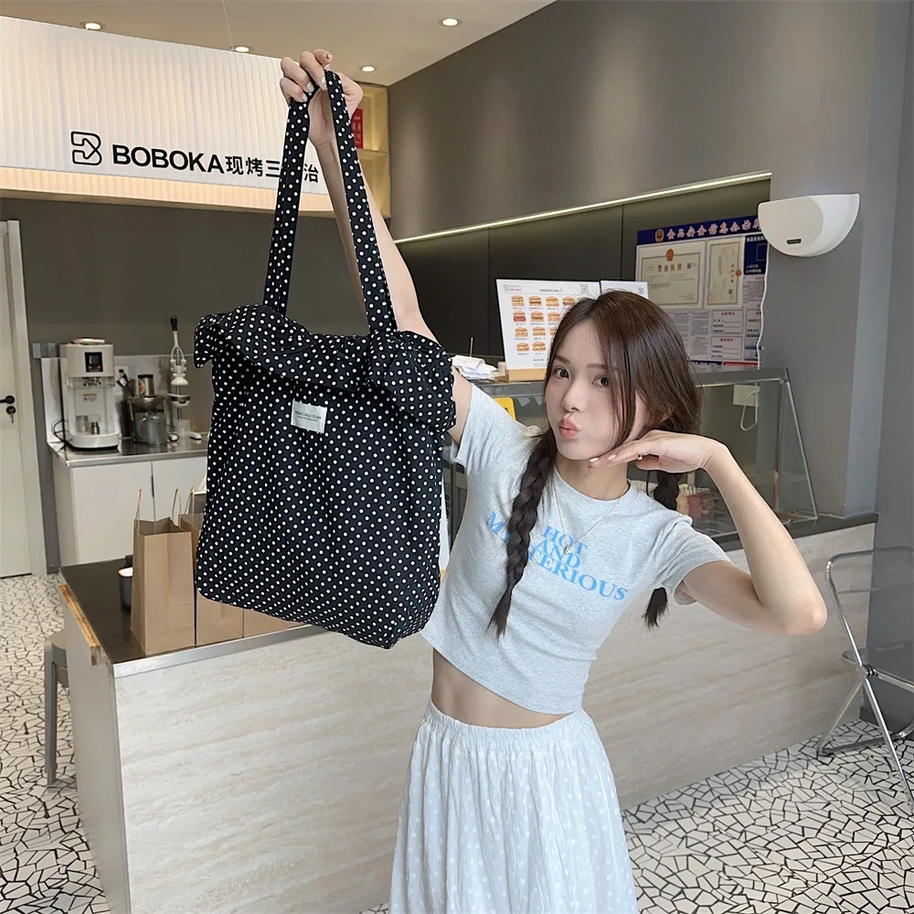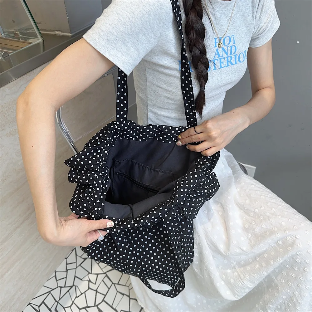 Korea INS Style Best Selling Women's Tote Bags Black White Wave Dot Single Shoulder Versatile Fashion Bags Straps