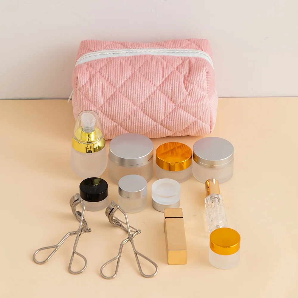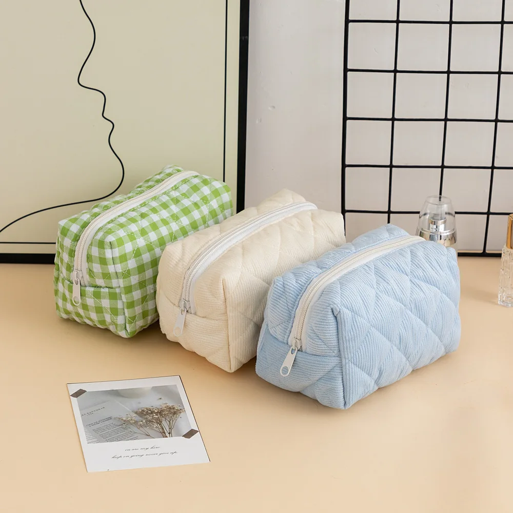 New Design Custom High-capacity Lattice Corduroy Travel Toiletries Cosmetic Bag