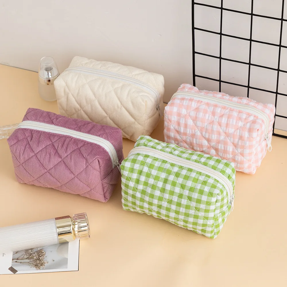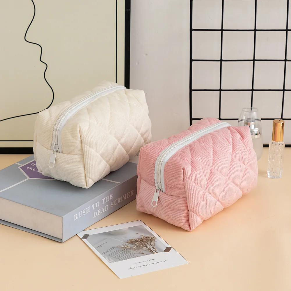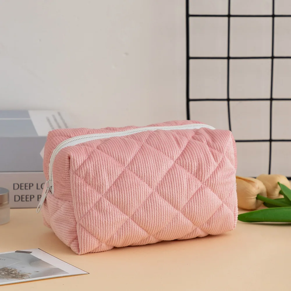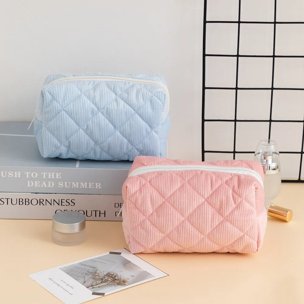 • New Design Custom High-capacity Lattice Corduroy Travel Toiletries Cosmetic Bag