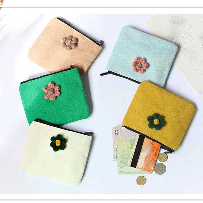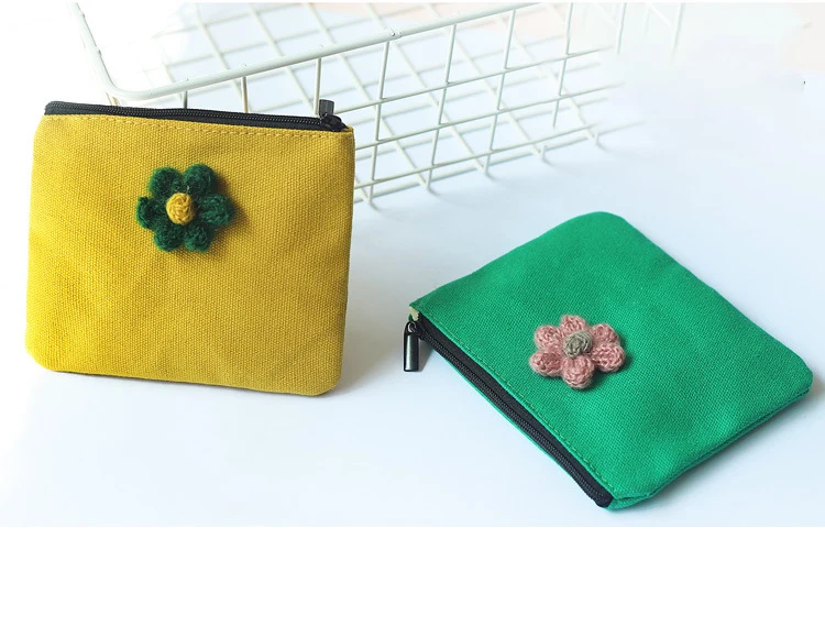 • Flower girl mini wallet portable simple cute small coin purse travel student Cotton Canvas Sanitary napkins storage bag