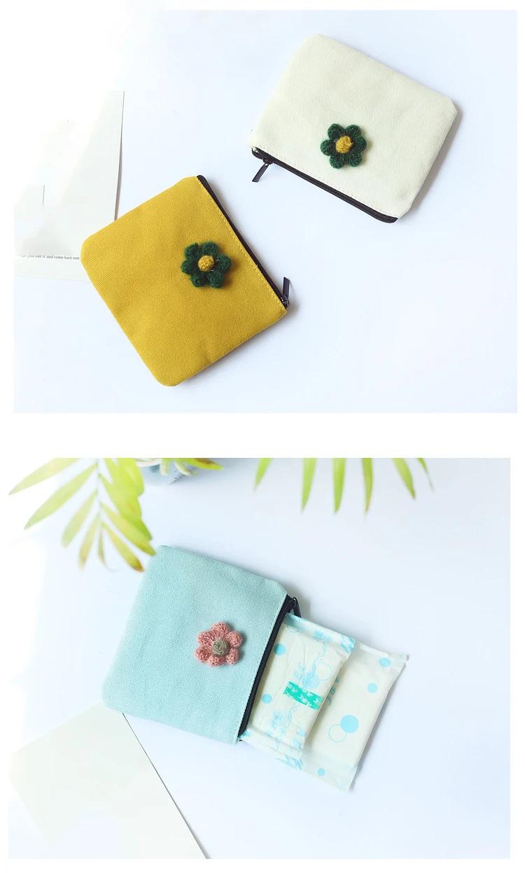 Flower girl mini wallet portable simple cute small coin purse travel student Cotton Canvas Sanitary napkins storage bag