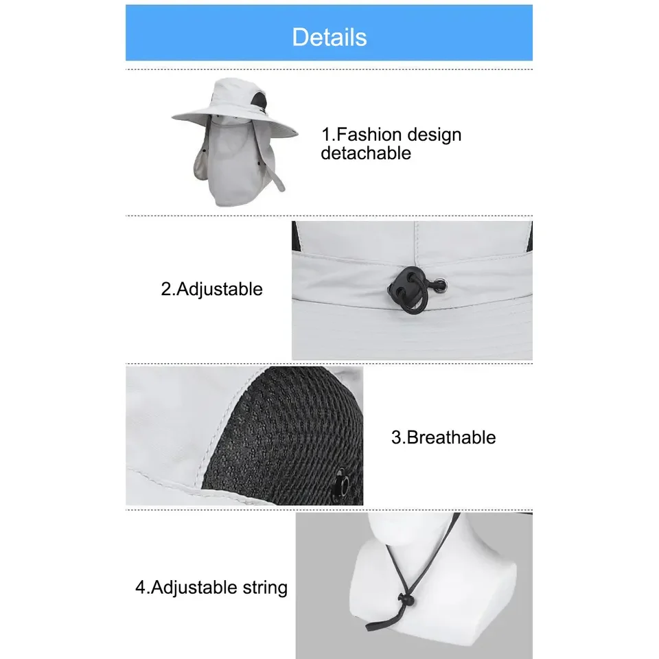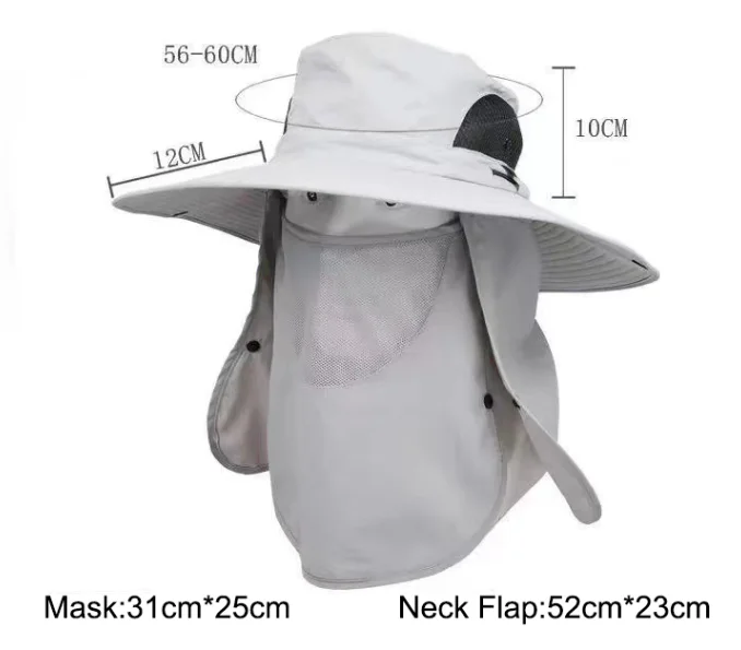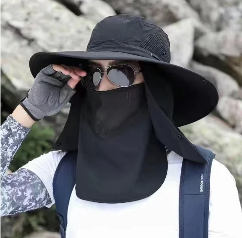 • Outdoor UV protection wide brim sun protection quick-dry foldable bucket hat with detachable mask and neck cover