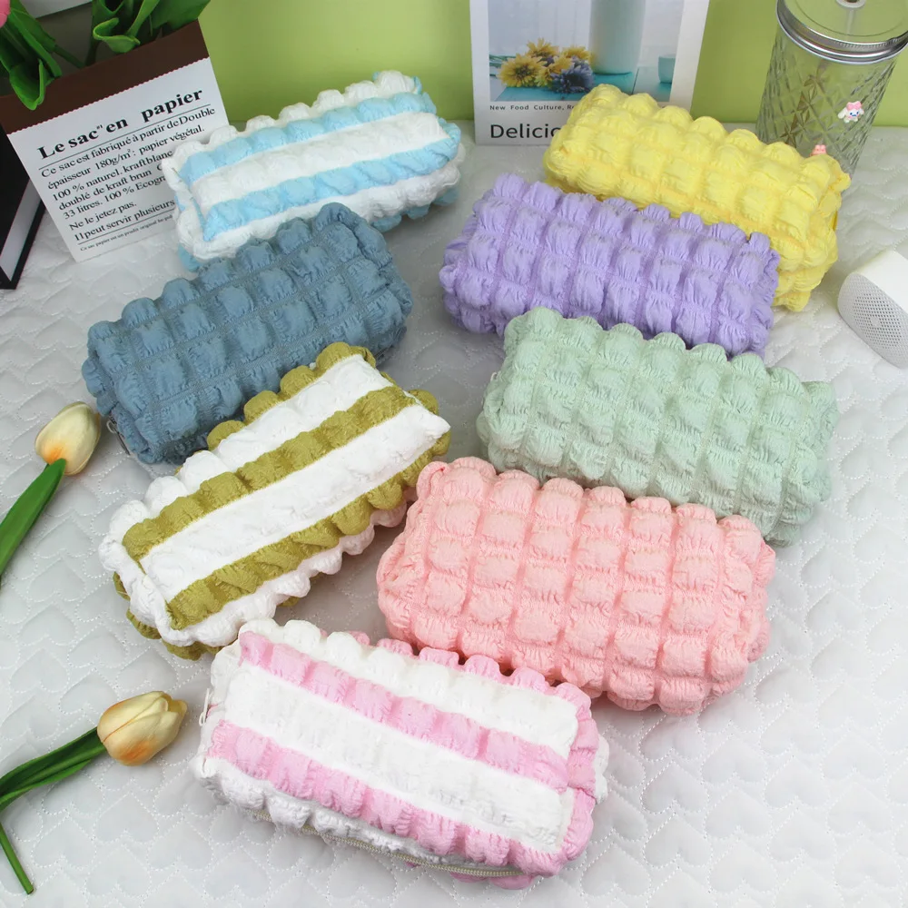 Puffs Fabric Zipper Quilted  Cosmetic Bag