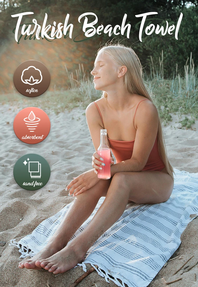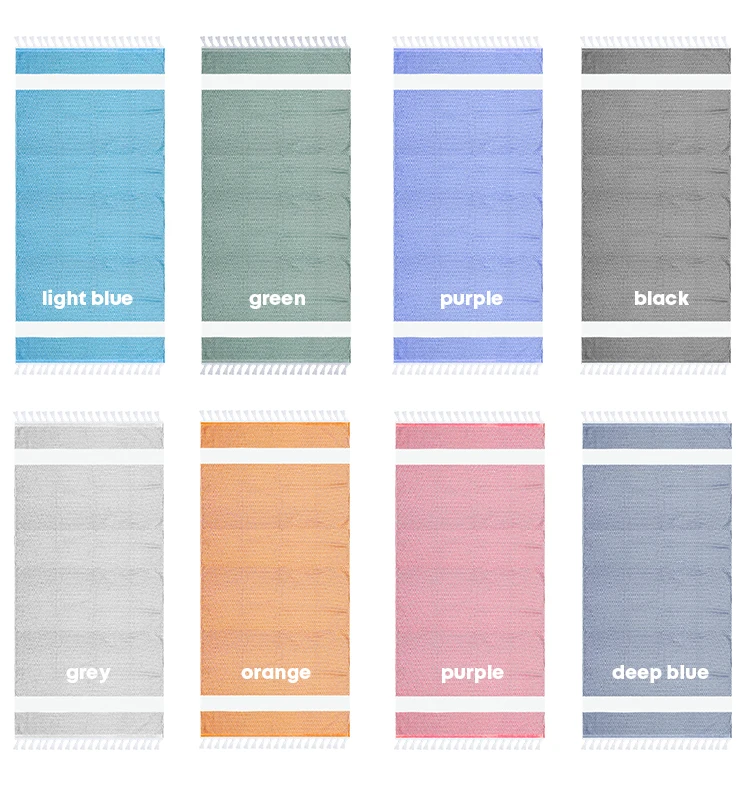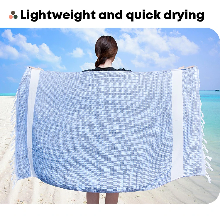 • Turkish Cotton Sand Free Quick Drying Lightweight Travel Towel Absorbent Jacquard Turkish Fouta Beach Towel With Tassels