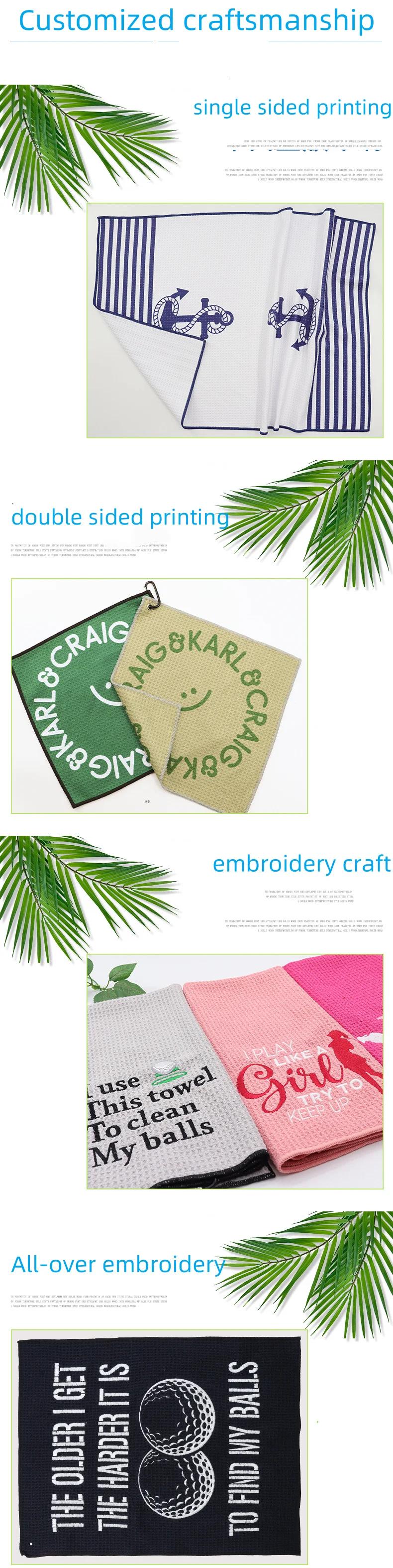 • Wholesale Custom Logo Printed Golf Waffle Towels With Hook and Pocket Microfiber Weave Golf Towel