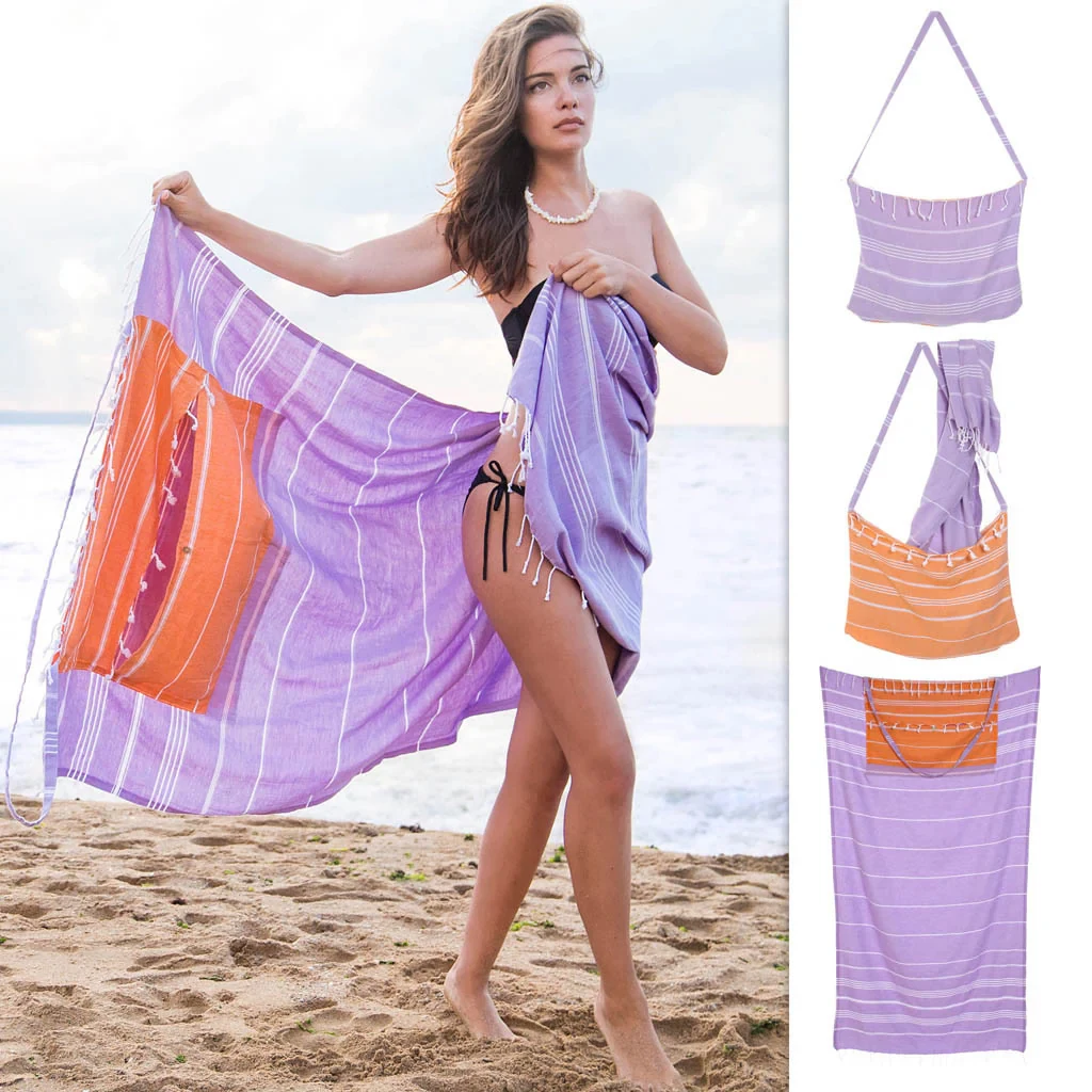 Wholesale personalized custom transformer towel 2 in 1 turkish cotton towels beach towels with bag
