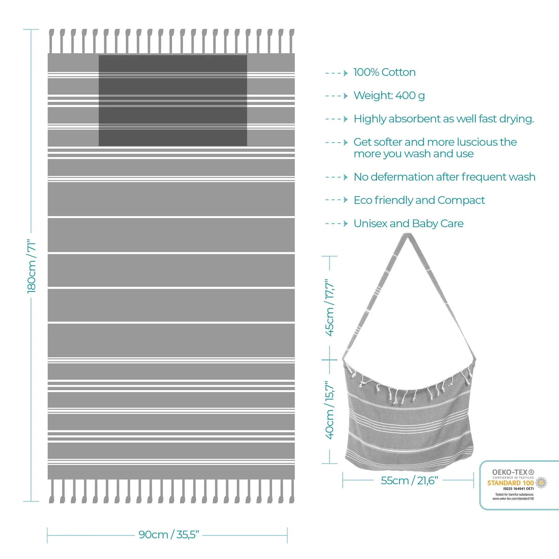 Transformer 2 in 1 turkish cotton beach towel