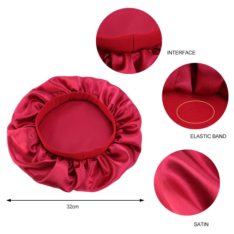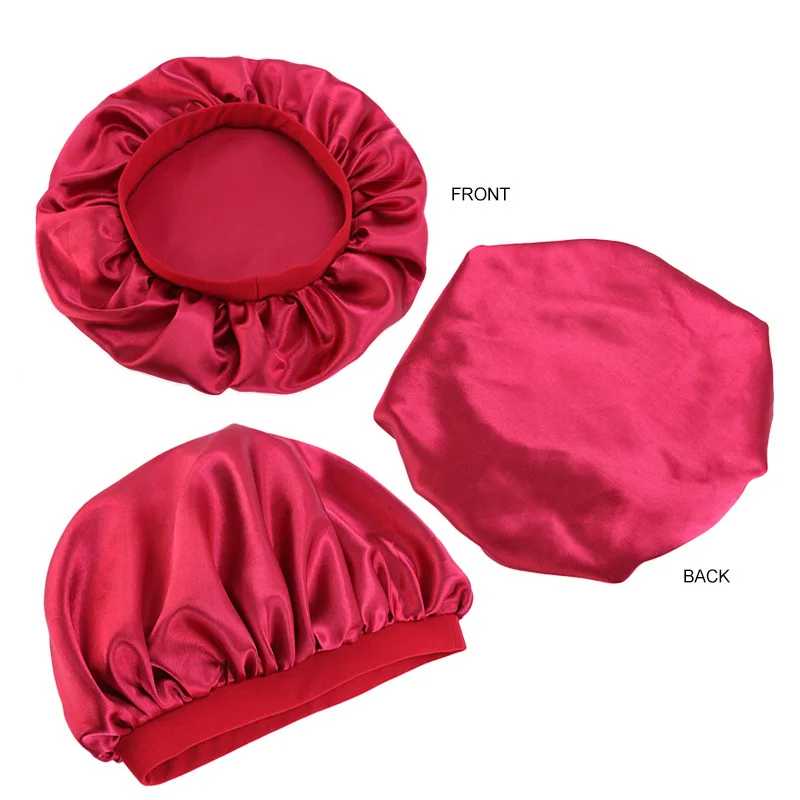 Women Satin Hair Wrap Sleep Hair Bonnet Head Wear Bonnet With Wide Elastic Band
